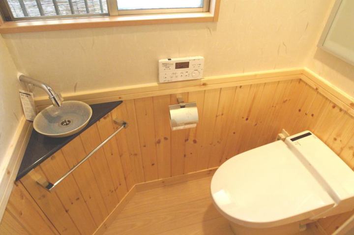 以前は普通のトイレだったのですが、今回リフォームするにあたって、「和風」をコンセプトとしてリフォームさせて頂きました。